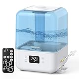 - 【4.5L Large Capacity & 50Hrs Long-Lasting】With a 4.5L water tank, this cool mist humidifier for bedroom sends out a steady stream of cool mist to cover a room of up to 322 sq.ft/ 30 m2. With a full tank, it can run for up to 50 hours on the lowest mist level, and more than 15 hours on the highest mist level, which is great for a large room.
