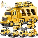 TEMI Construction Truck Toys Cars for Toddlers 3-5 - 7-in-1 Friction Powered Vehicle Toy 3 4 5 6 Year Old Boys, Carrier Transport Trucks Kids Years, Car Set Age 3-9 Boys and Girls