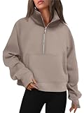WYNNQUE Womens Quarter Zipper Pullover Oversized Sweatshirts Cropped Fleece Half Zip Hoodies Fall Clothes Sweaters Thumb Hole CoffeeGrey XL